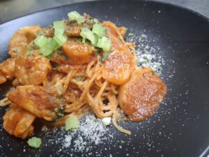 福岡県産の真鯛、生でも食べれるほどの鮮度とうま味成分の多いマダガスルージュ、香ばしくソテーに。