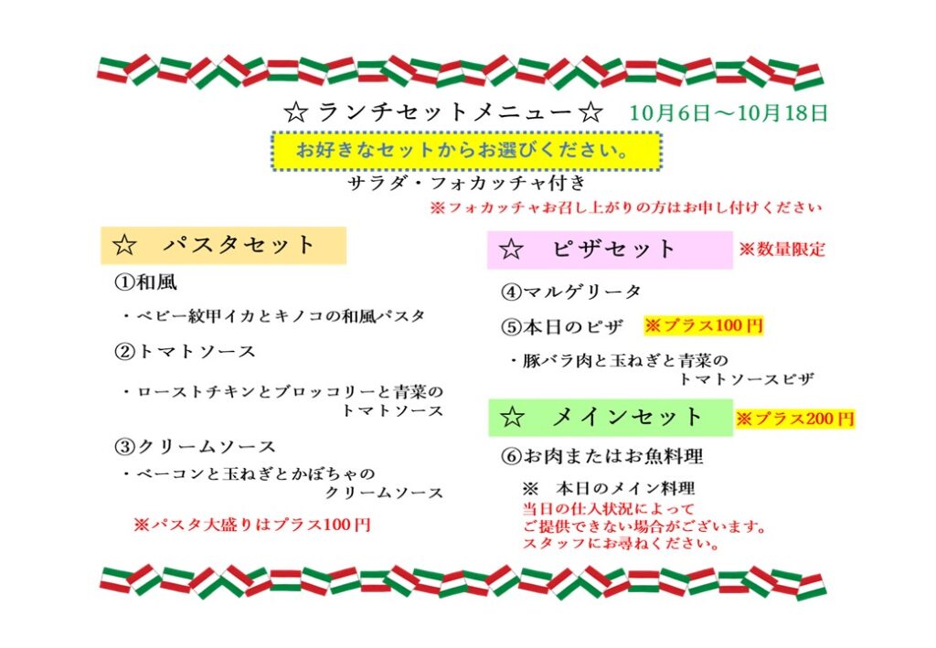 10月6日からのランチです。 2025年10月5日 最終更新日時 : 2025年10月5日 bambino_writer ベビー紋甲イカとキノコの和風パスタ ローストチキンとブロッコリーと青菜のトマトソース ベーコンと玉ねぎとかぼちゃのクリームソース 豚バラ肉と玉ねぎと青菜のトマトソースピザ FacebookXBluesky