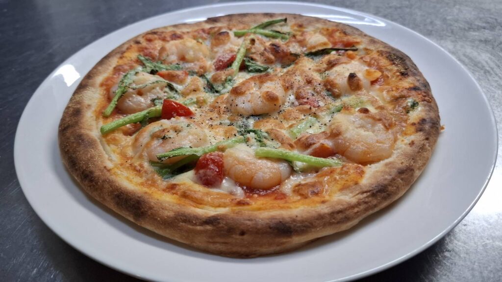 海老と春菊とフレッシュトマトのトマトソースピザ