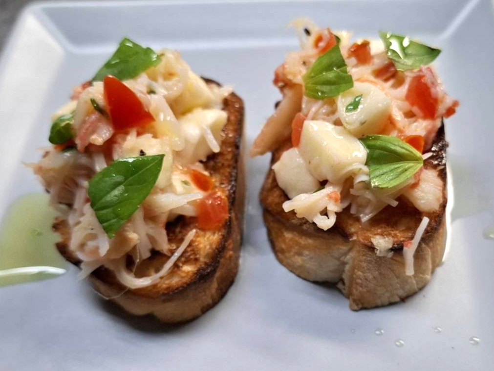 ズワイガニとモッツァレラチーズのブルスケッタ
